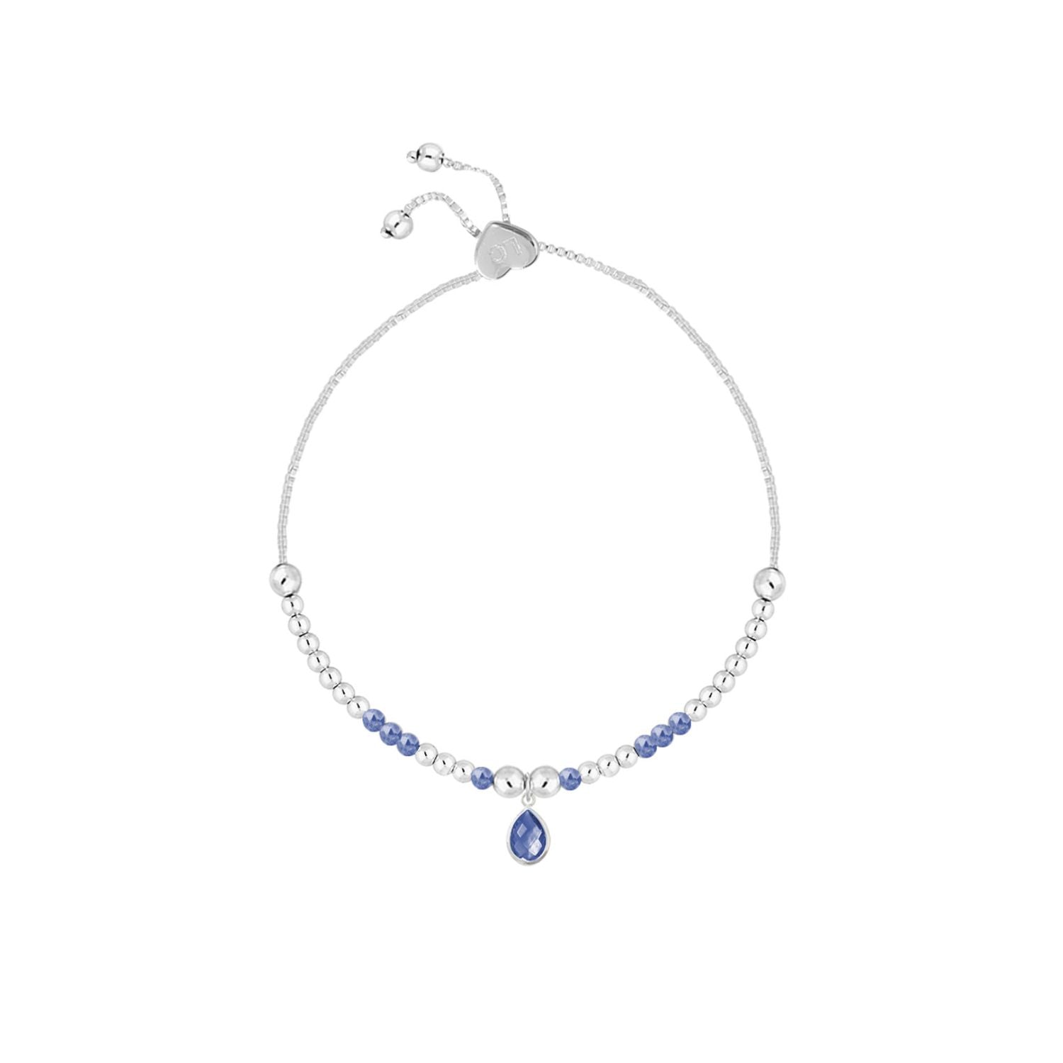 Celebrate September birthdays in timeless elegance with our adjustable slider bracelet, featuring a stunning tear drop pendant adorned with special blue sapphire gemstones. This bracelet is meticulously crafted to blend sophistication with symbolic meaning, making it a perfect addition to any jewellery collection.