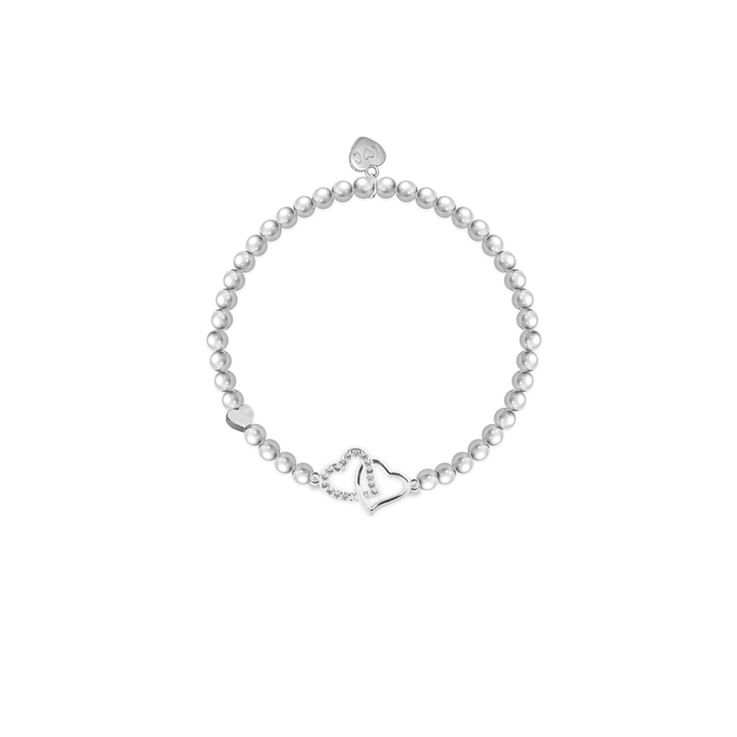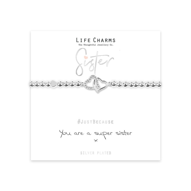 Celebrate the unbreakable bond of sisterhood with the Life Charms "Super Sister" Bracelet. This beautifully crafted piece features a pure silver-plated double heart charm bead, symbolising love and connection, delicately strung on a 5mm beaded stretch bracelet for a comfortable and elegant fit.