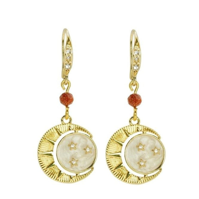 Rosie Fox Gold Sunstone Gemstone New Moon, Sun and Stars Earrings