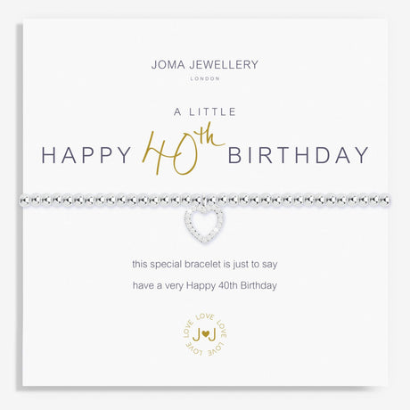 £1899£1999Unit price /UnavailableVery low stock (2 units)Joma Jewellery Silver A Little 'Happy 40th Birthday' Bracelet