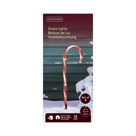 £1124£1499Unit price /UnavailableVery low stock (1 unit)Lumineo 25cm Micro LED Stake Light Plastic Candy Canes - Set of 4