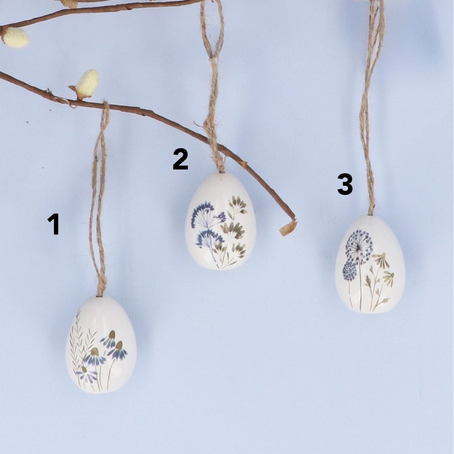 Gisela Graham 5cm Blue Meadow Ceramic Egg Hanging Decoration (Choice of 3)