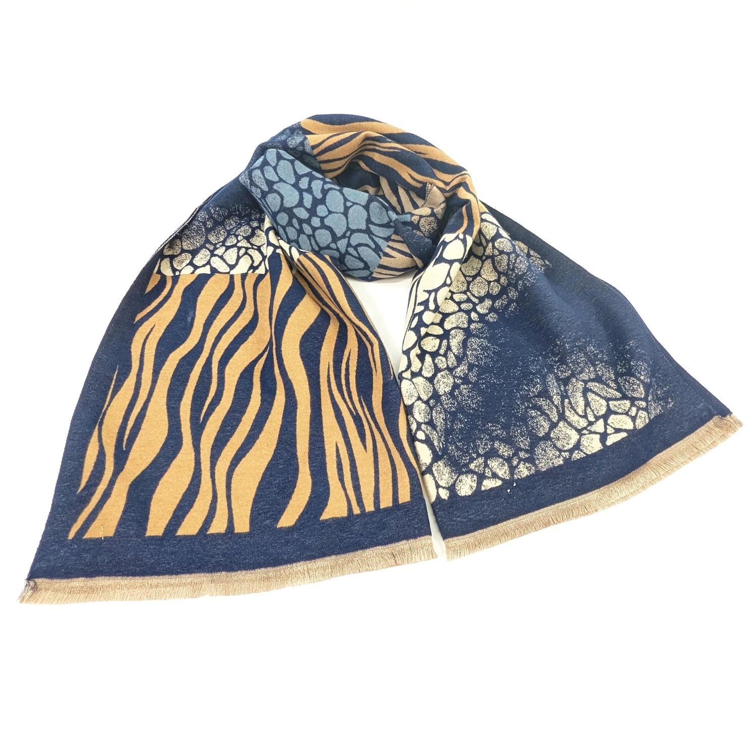 Black Ginger 180cm Navy/Camel Animal Print Boxes Obzor Scarf - 736-404