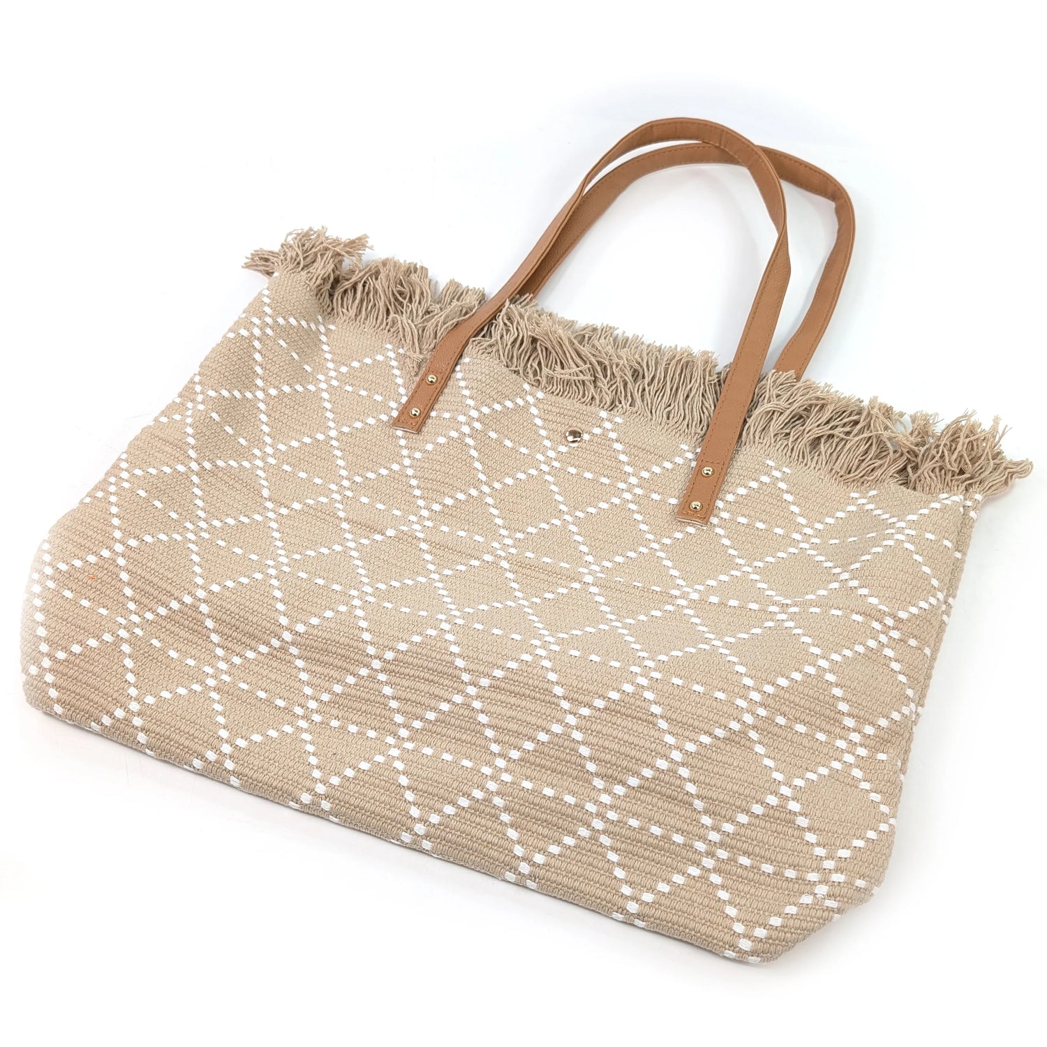 Large Tasseled Tote Bag - Latte πβ¨