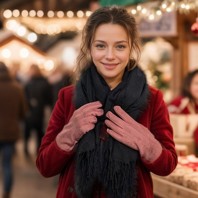 Stay effortlessly elegant this season with the Black Ginger Diamante Suede Style Gloves – Dusty Pink. Made from a soft suede-effect fabric, these gloves offer both warmth and luxury, making them perfect for crisp winter days. The beautiful dusty pink shade pairs perfectly with a variety of coats and accessories, while the sparkling diamante accents add a touch of refined glamour. Featuring touchscreen-compatible fingertips, these women’s suede gloves allow you to stay connected without compromising comfort. Designed by Black Ginger, they provide a perfect blend of practicality, sophistication, and seasonal charm.