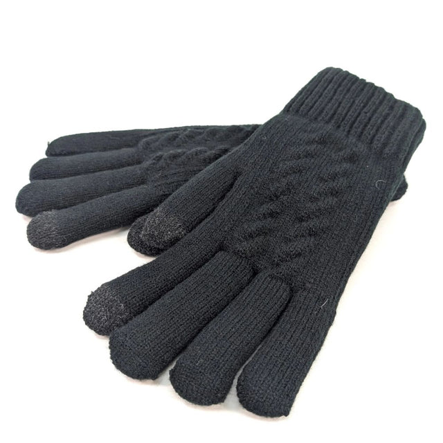 Black Ginger Men’s Knitted Gloves – Black | Warm Faux Fur Lined Touchscreen Gloves