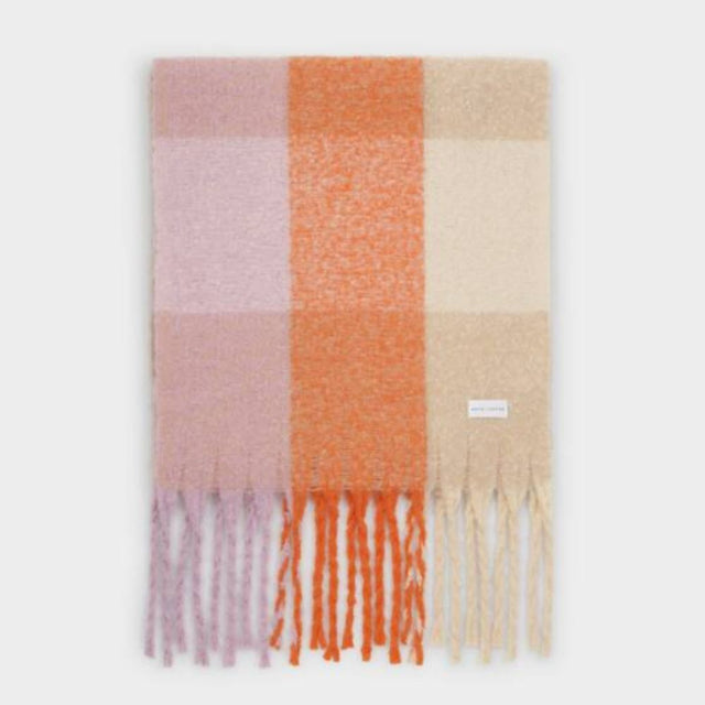 Katie Loxton Lilac & Orca Recycled Checked Tassel Scarf – Sustainable Soft-Touch Layering