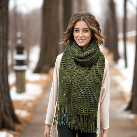 Black Ginger Rila Sequin Long Knitted Scarf - Dark Green