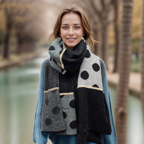 £2299Unit price /UnavailableVery low stock (1 unit)Black Ginger Pantai Spotty Box Thick Scarf - Dove Grey