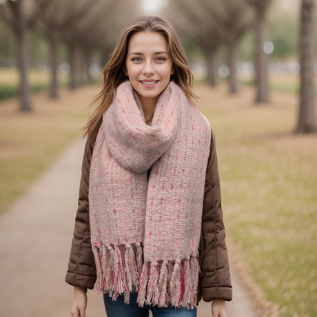 Black Ginger Agung Super Thick Box Scarf - Pink/Orange