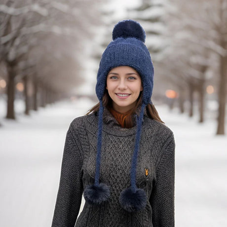 £699Unit price /UnavailableBlack Ginger Long Tie Pom Pom Knitted Hat - Navy