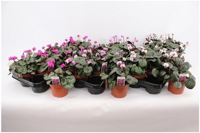 A delightful perennial known for its charming, dainty blooms and elegant foliage, Cyclamen Coum Mixed brings a splash of color to both indoor and outdoor spaces. This selection features light pink, pink, and darker pink flowers, each standing above rounded dark green leaves, sometimes beautifully marbled with silver. Growing to just 10.5cm tall, this compact, low-maintenance plant is a perfect choice for rock gardens, patios, and underplanting.