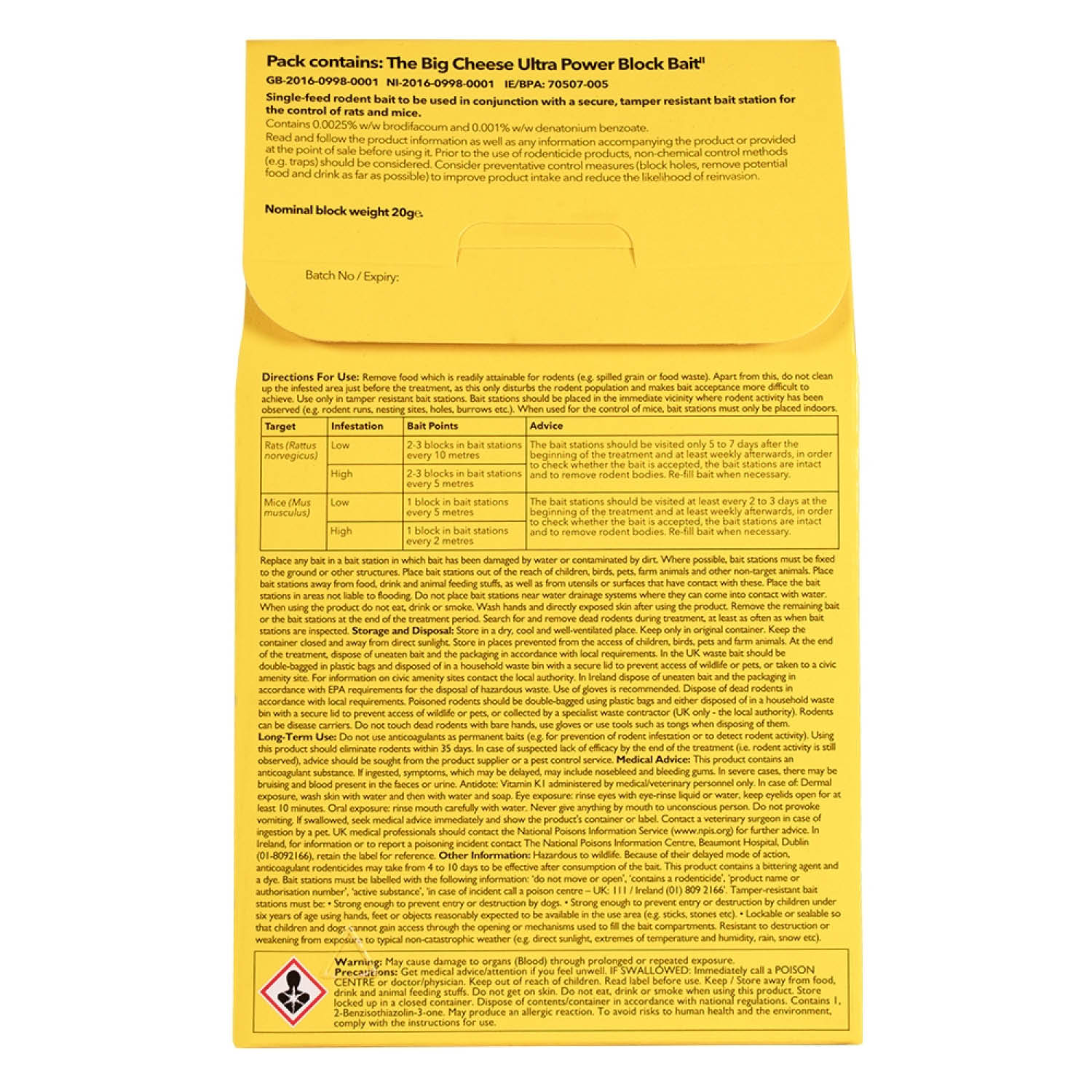 Control rats and mice swiftly and securely with The Big Cheese® Ultra Power Block Bait – trusted performance for serious pest problems.