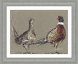 The 'Brief Encounter' Framed Print by Nicola Janes Rowles is a stunning piece that showcases two pheasants in a stylish grey frame. Expertly crafted by a talented artist, this print will add a touch of elegance to any space. Bring the beauty of nature into your home with this exquisite piece.