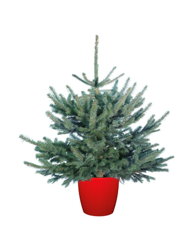 A pot grown Blue spruce is the perfect tree to add festive cheer to your home or outdoor display this year. A pot grown tree is an eco-friendly option to enjoy year after year. Look after it in your garden then bring it back in to add to your Christmas display each year.