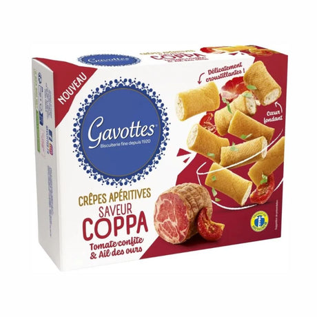 £199Unit price /UnavailableVery low stock (1 unit)Gavottes 80g Coppa, Sundried Tomato & Garlic Mini Crepes