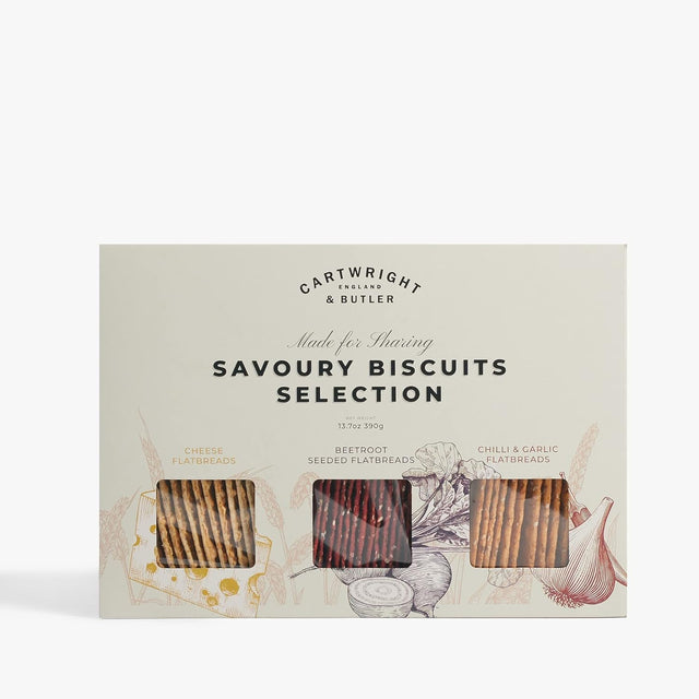 Celebrate savoury snacking at its finest with the Cartwright & Butler The Savoury Biscuits Selection – a trio of irresistible artisan flatbreads, ready to elevate any occasion.