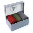 POM Red, Green and Grey Triple Ribbed Sock Set for Men – Cosy Gift Boxed Winter Socks