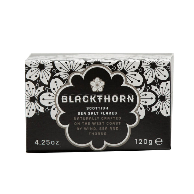 Experience the unique flavour of Blackthorn Salt, harvested from the cold waters of the West Coast of Scotland. This 120g package of Scottish Sea Salt Flakes is made with wind, sea and thorns, adding a poignant, bittersweet taste with notes of the sea to your food. Praised by experts, it has been awarded double stars at Great Taste Awards 2021 and is organically approved.