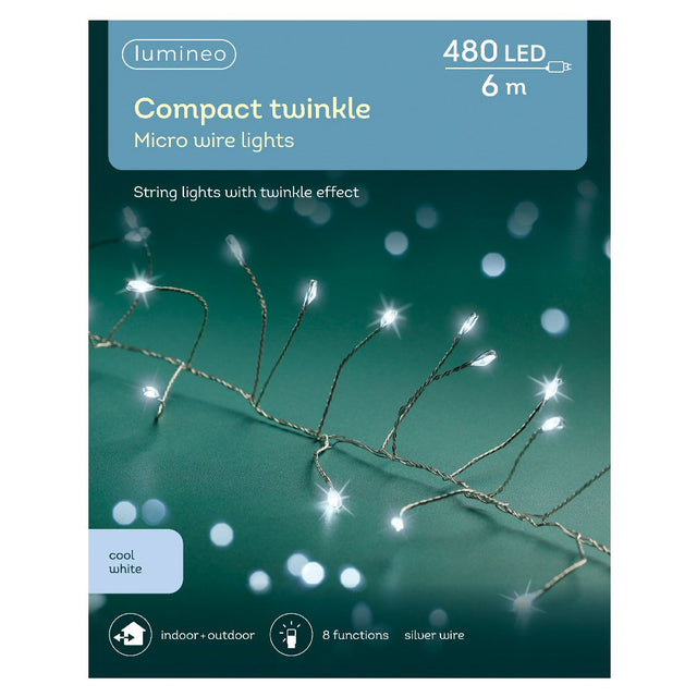 Lumineo 480 Cool White Micro LED Compact Wire Christmas Lights (6m)