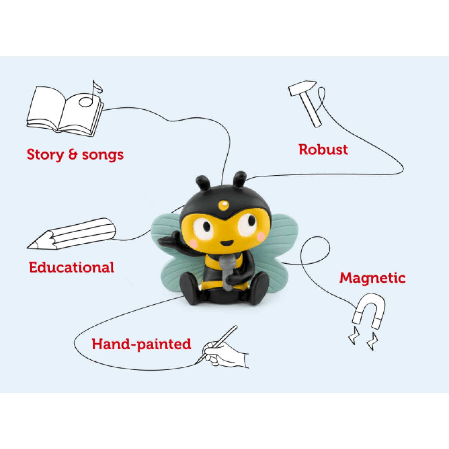 Calling all young fact fans and nature explorers! Join Bizzy the honeybee as she embarks on a buzzingly brilliant adventure through the insect world. With her insect pals like Mandy the praying mantis, Gary Grasshopper, and Polly Roly Poly, Bizzy’s journey is filled with fascinating stories and sing-along songs that celebrate the wonder of insects. This Tonie is perfect for children aged 3 and up, providing an enchanting introduction to the world of bees, beetles, dragonflies, and more!