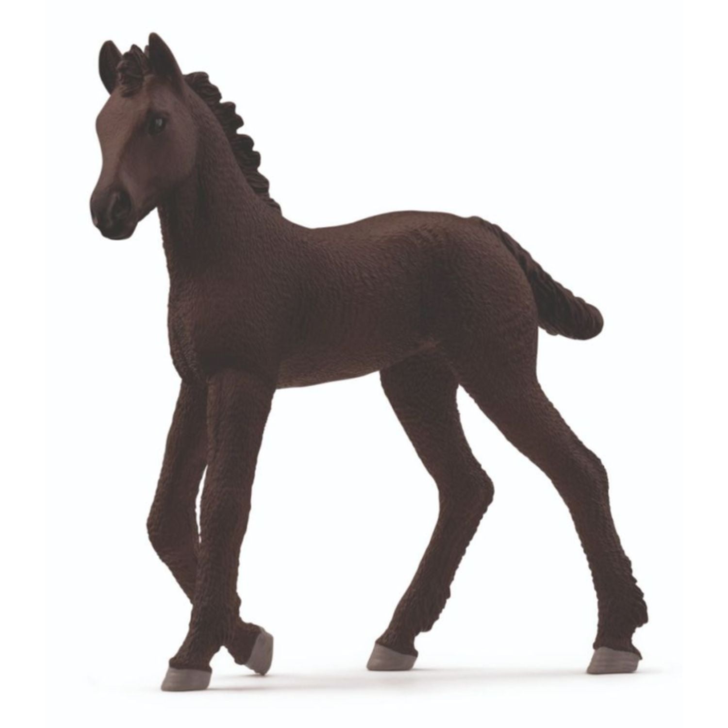 Welcome a charming addition to your collection with the Schleich Friesian Foal. This beautifully detailed figurine captures the elegance and distinctive features of the Friesian breed, known for its striking black coat and flowing mane.