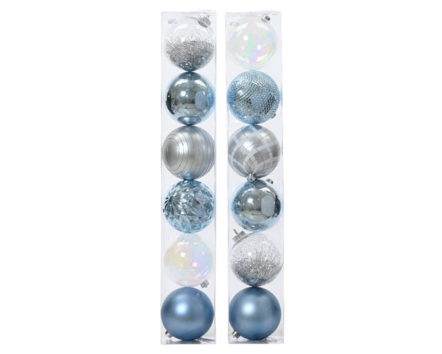 Decoris 15cm Shatterproof Blue, White & Silver Baubles – Pack of 6 Large Christmas Tree Ornaments