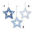 Decoris 8.4cm Glass Star Hanging Decorations – Blue (Choice of 3 Designs)