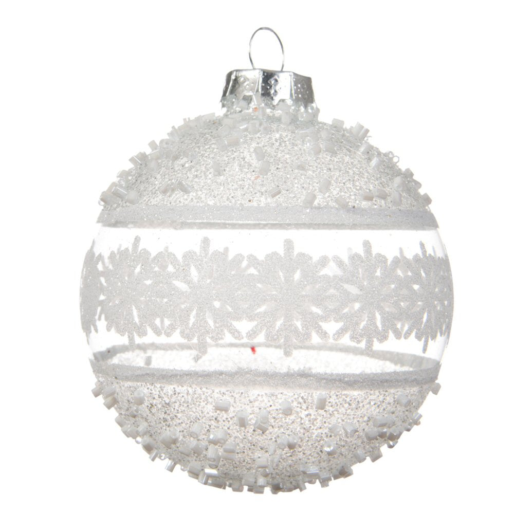 Decoris 8cm Glass Matt Snowflake Beads Bauble – Elegant Clear Christmas Tree Decoration
