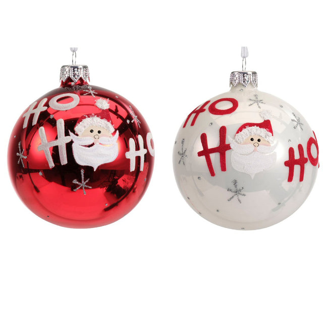 Decoris 8cm Santa “Ho Ho Ho” Glass Bauble – Choice of Red or White
