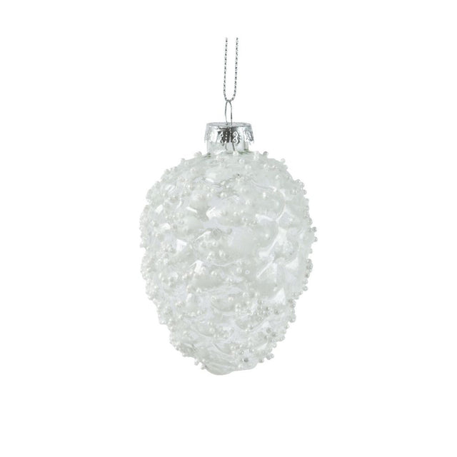 Decoris 9.7cm Clear Glass Pinecone with White Beads Bauble