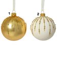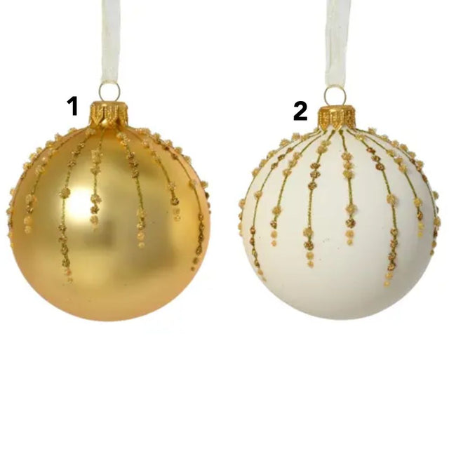Decoris Gold/White Matte Glass Bauble with Ballotine Drops (Choice of 2)