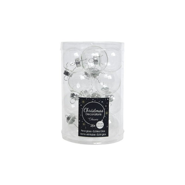 Decoris Pack of 16 3.5cm Transparent Mini Glass Baubles – Elegant Clear Christmas Decorations