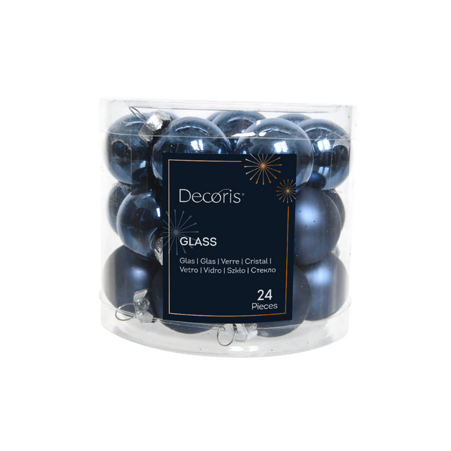 Decoris Pack of 24 2.5cm Night Blue Mini Glass Baubles