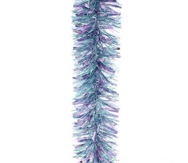 • 2m long chunky fine tinsel garland with blue and purple iridescent strands