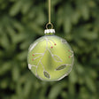 Festive 8cm Green Gold Glitter Leaf Glass Bauble