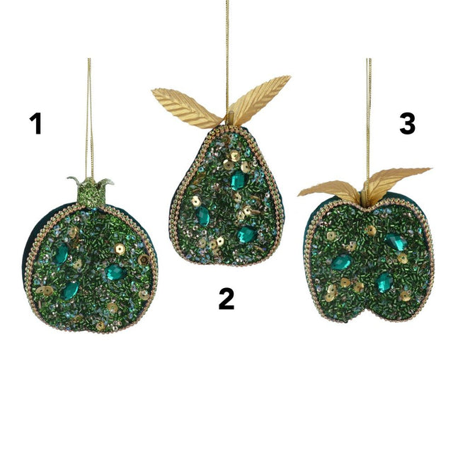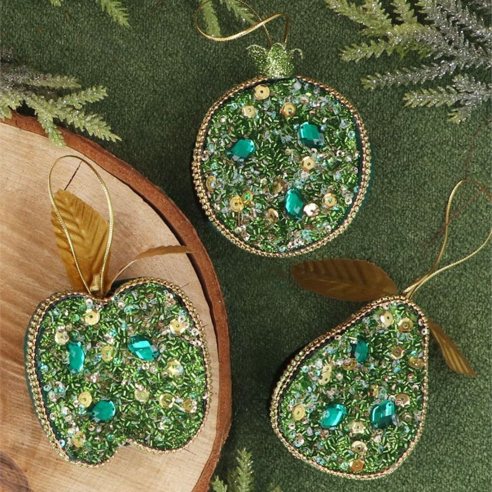 The Gisela Graham Green Half Fruit Decoration is a stylish addition to your seasonal decorating. Each piece is crafted with meticulous detail, featuring a beautifully shaped half-fruit design available in pomegranate, pear, or apple. Finished in rich green tones with shimmering accents of gold, the surface is embellished with sequins, beads, and glitter, ensuring the decoration sparkles from every angle. Measuring around 10cm tall, these lightweight yet durable decorations are ideal for both real and artificial Christmas trees, as well as festive garlands or table centrepieces. A perfect blend of nature-inspired style and festive glamour, these ornaments will instantly elevate your Christmas décor.