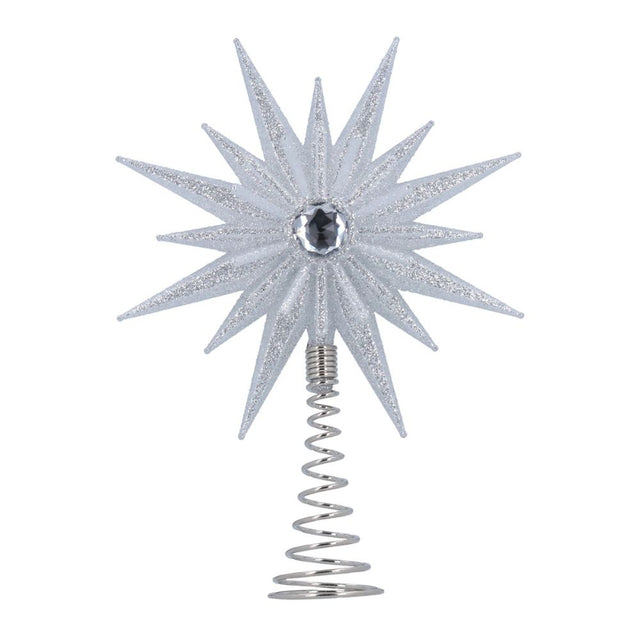 Gisela Graham 16cm Silver Glitter Starburst Tree Topper