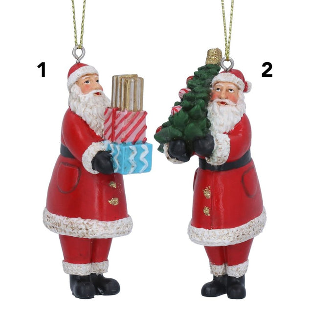 Gisela Graham Resin Santas with Tree & Present Hanging Decoration – Choice of 2