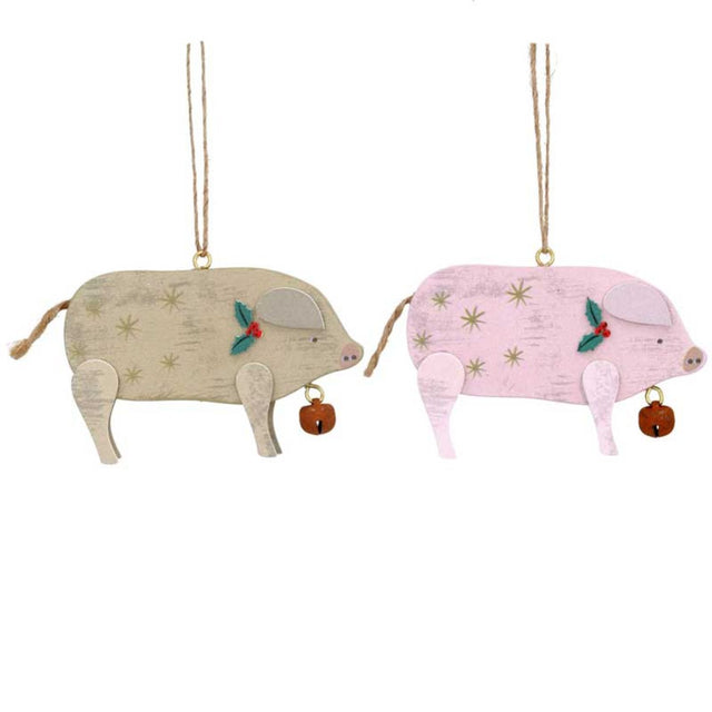 Gisela Graham Wooden Pig Hanging Decoration (Choice of 2)