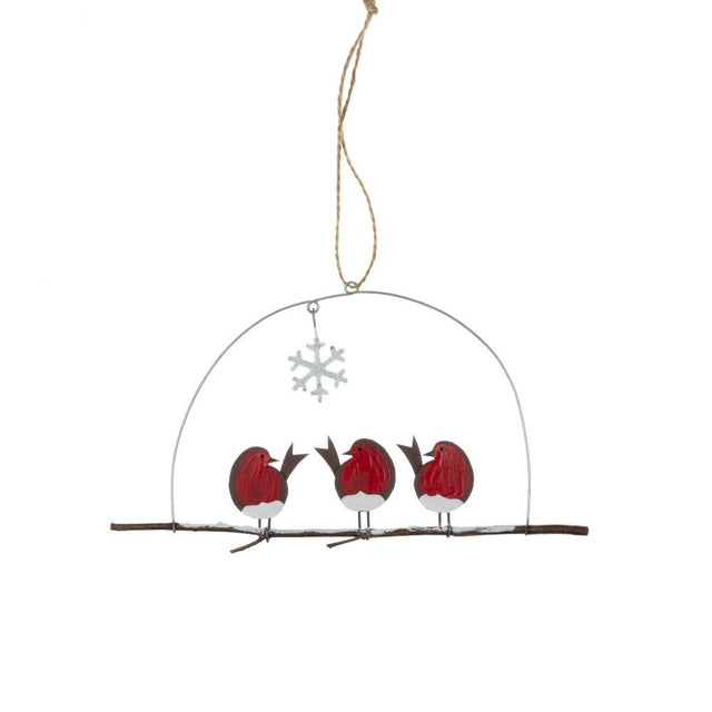 Shoeless Joe 16cm Three Robins on a Perch Decoration