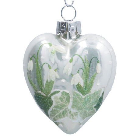 Gisela Graham Glass Heart with Snowdrops Hanging Decoration