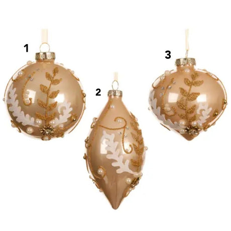 £299Unit price /UnavailableVery low stock (2 units)Decoris 10cm Transparent Glass Bauble With Gold bead/Glitter Leaves