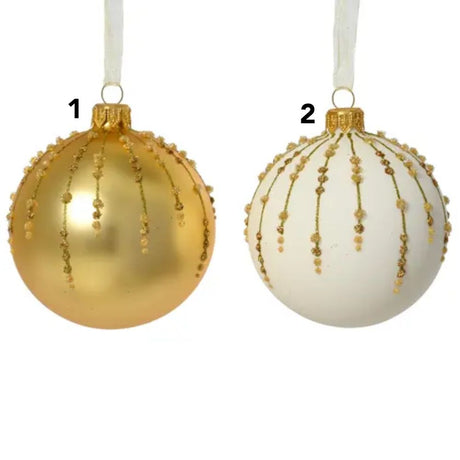 £199Unit price /UnavailableLow stock (7 units)Decoris Gold/White Matte Glass Bauble with Ballotine Drops (Choice of 2)