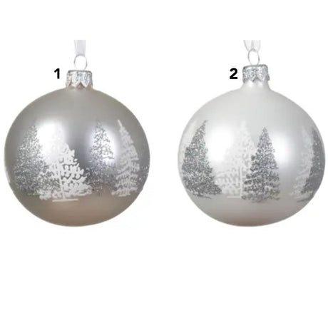£499Unit price /UnavailableLow stock (10 units)Decoris Silver/White Matte Glass Bauble with Christams Tree Border (Choice of 2)