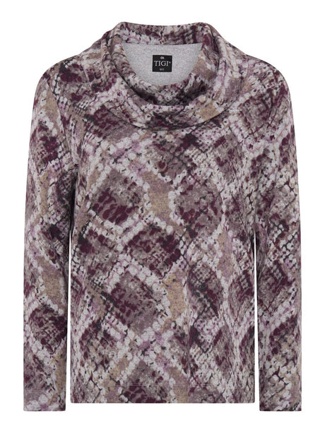 TIGI 10/12 Purple Mosaic Print Cowl Neck Top - T25-08C
