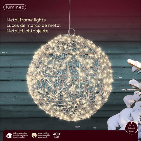 Lumineo 28cm Warm White LED Lit Metal Frame Ball Decoration