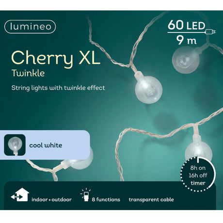 £399Unit price /UnavailableIn stockLumineo 60 LED Cool White Cherry LED Twinkle Effect Outdoor String Lights