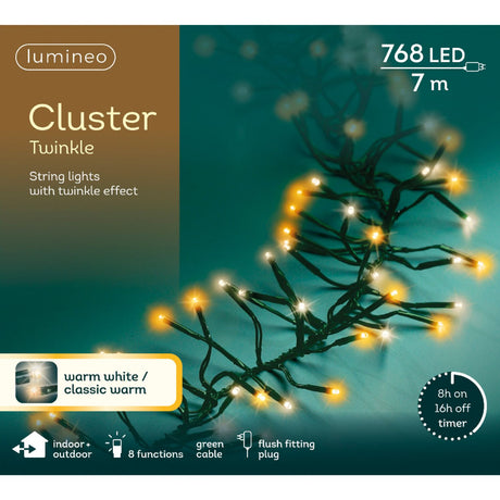£2799Unit price /UnavailableLow stock (3 units)Lumineo 768 Warm White & Classic Warm LED Twinkle Effect Cluster Lights (7m)