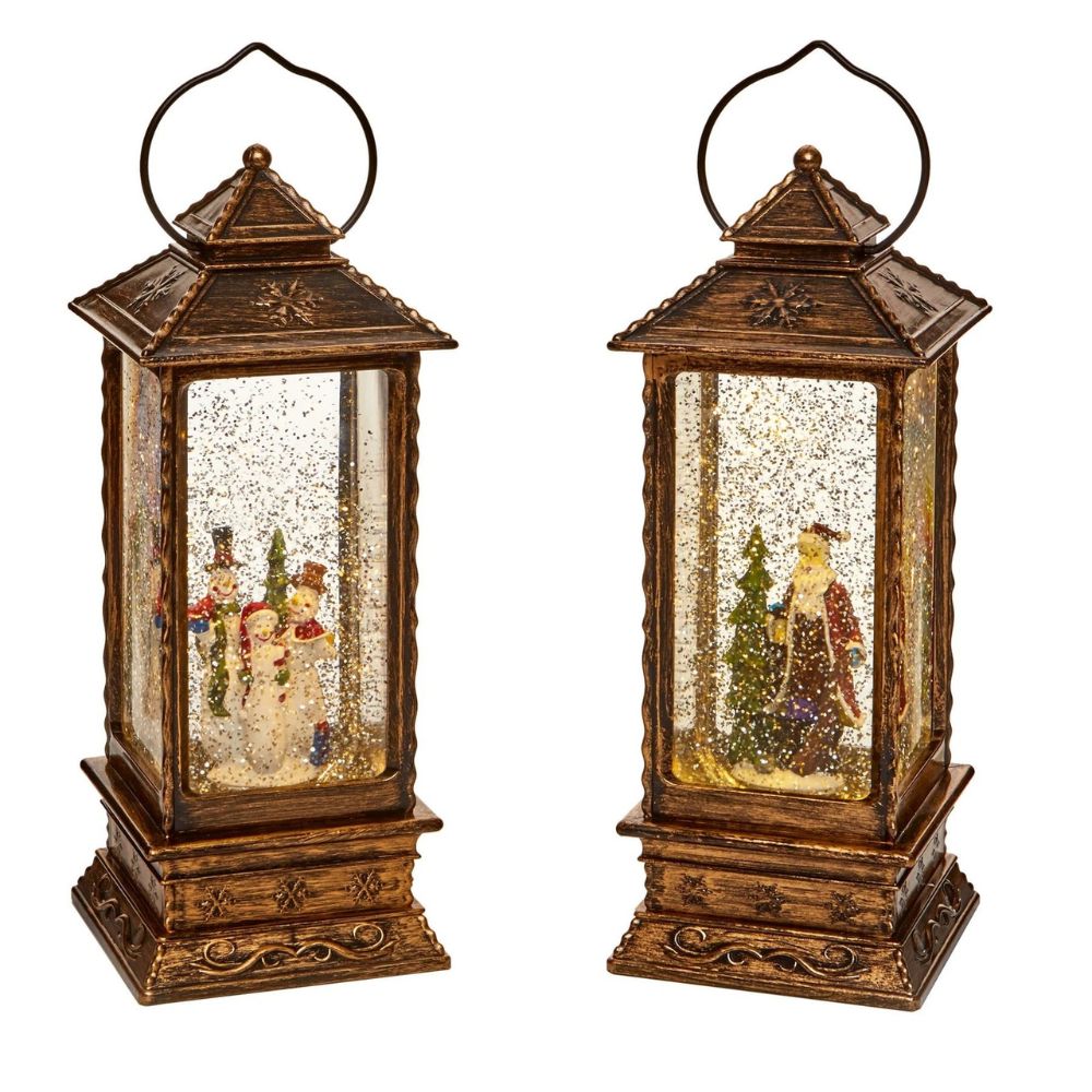Premier 27cm Warm White Lantern Shaped Christmas Glitter Water Spinner (Choice of 2)